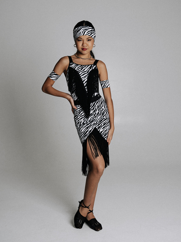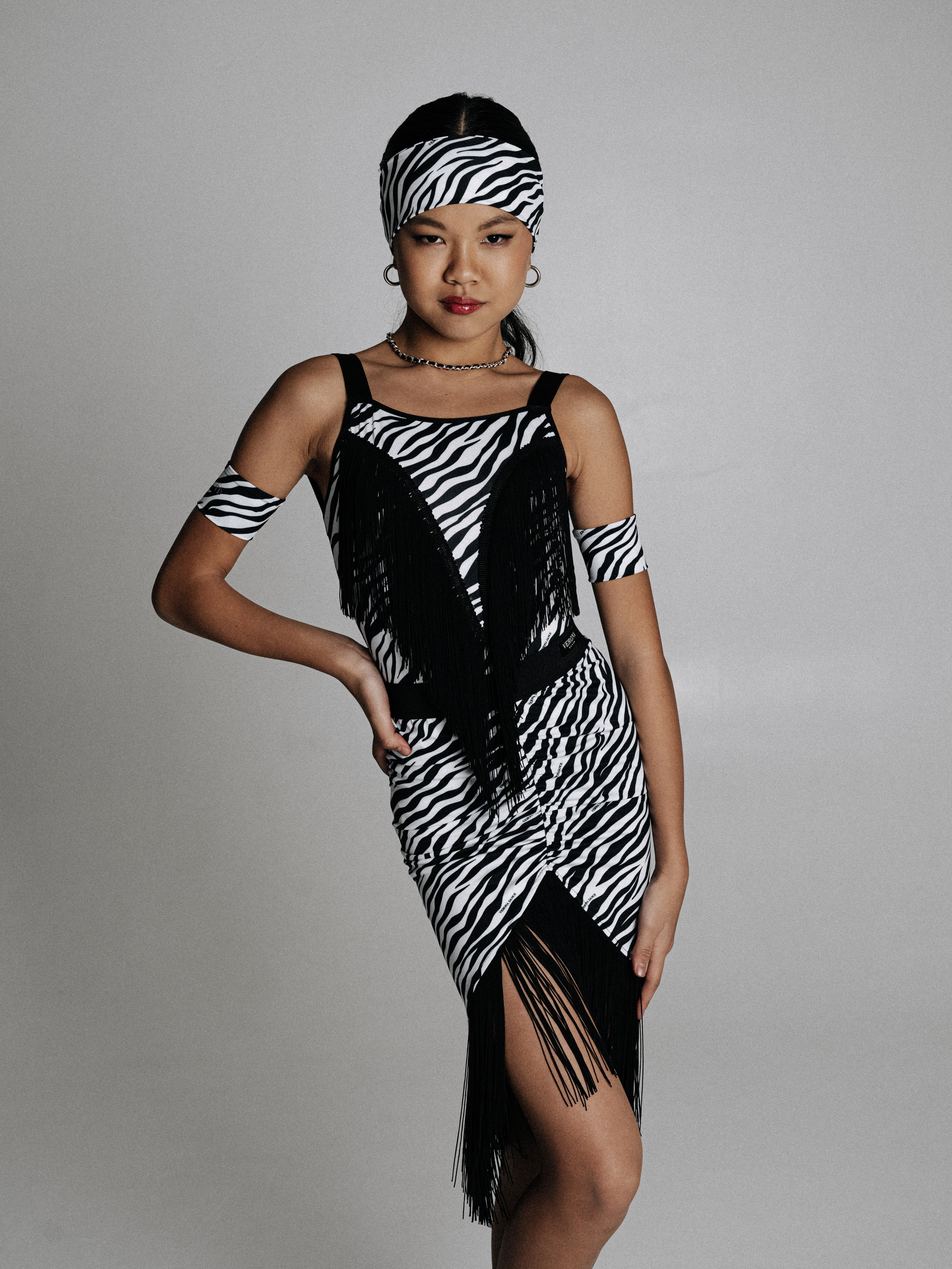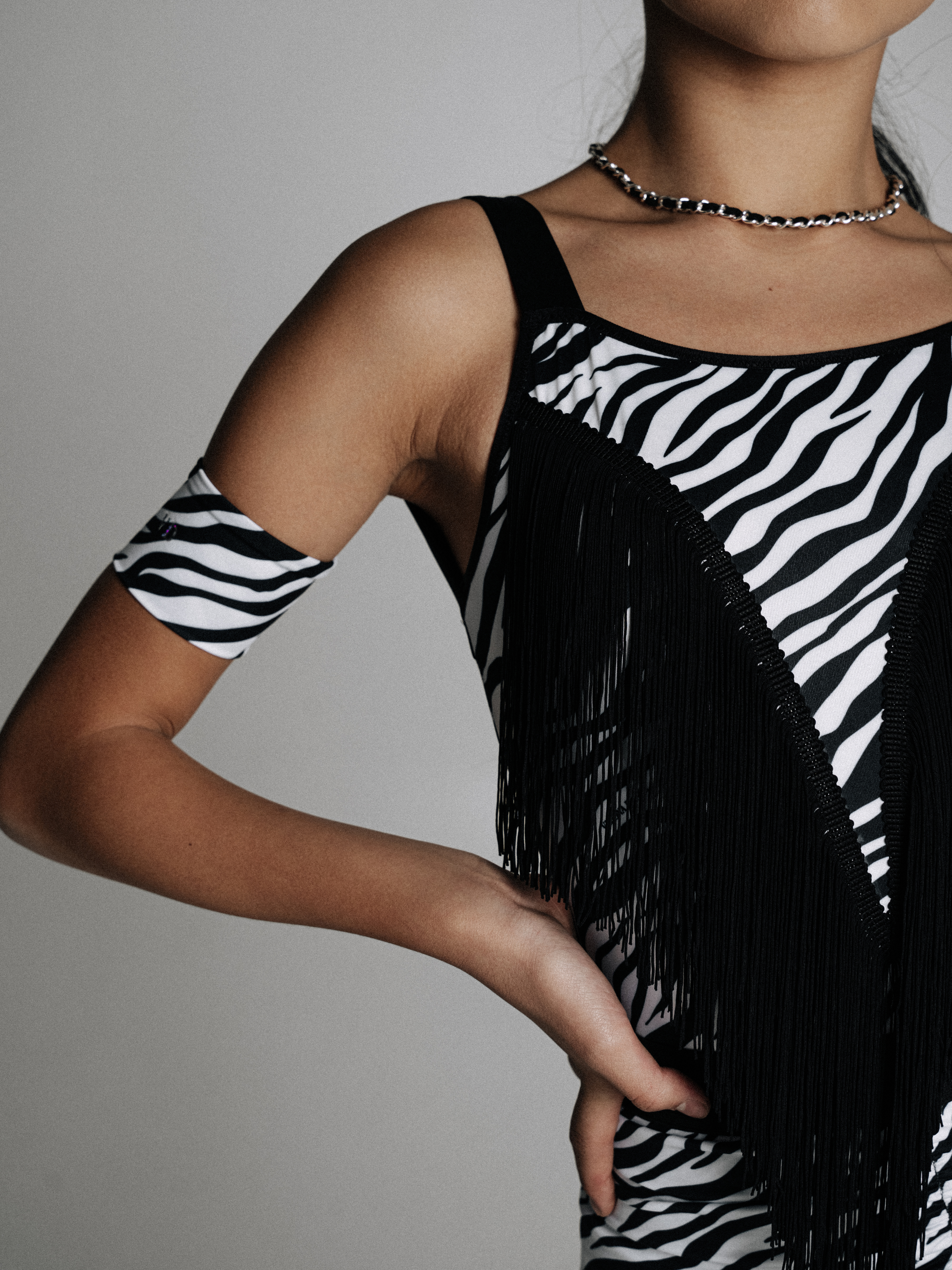 Боди из принтованной ткани. Без рукавов. Спереди бахрома , спинка открытая.