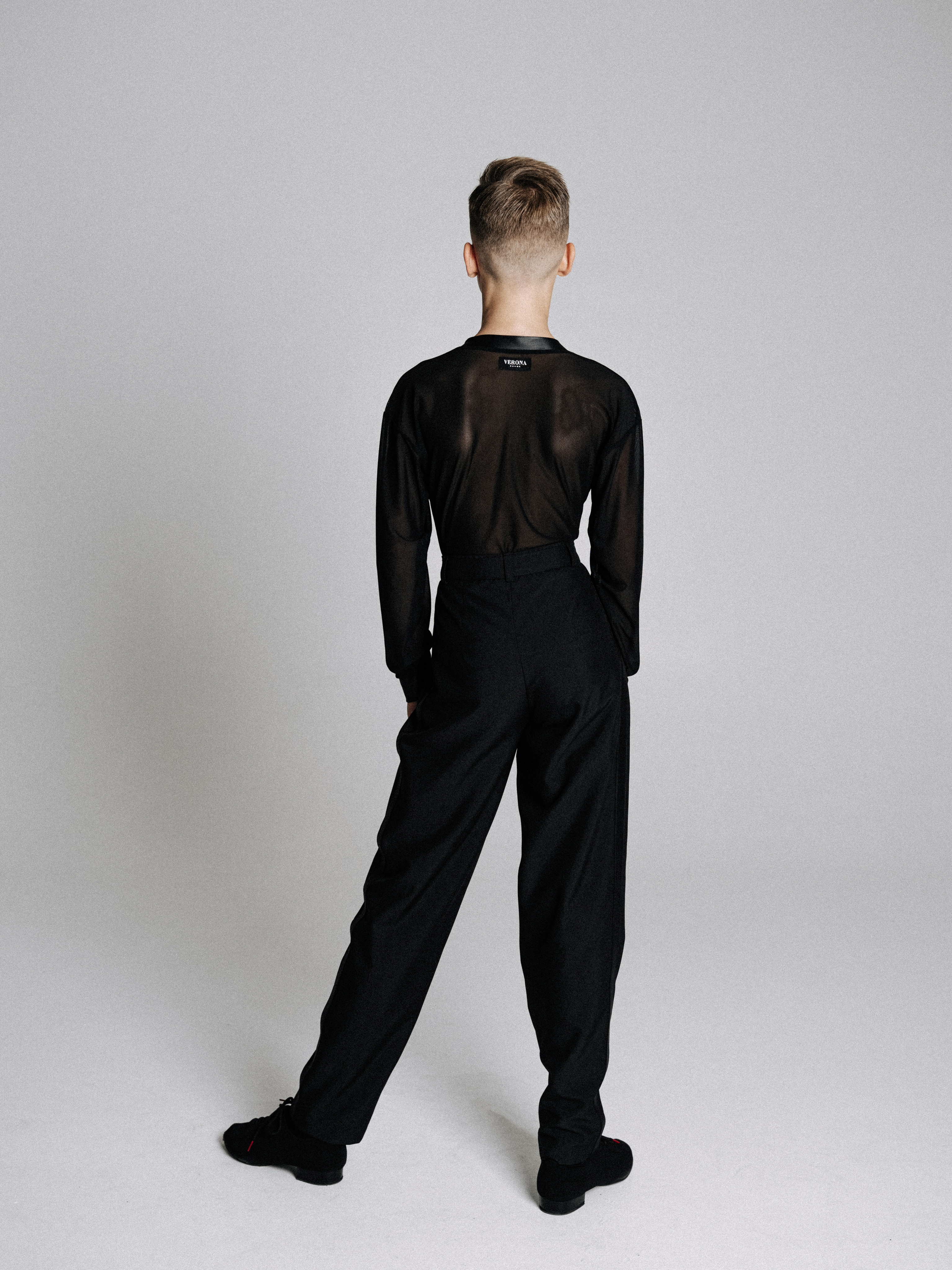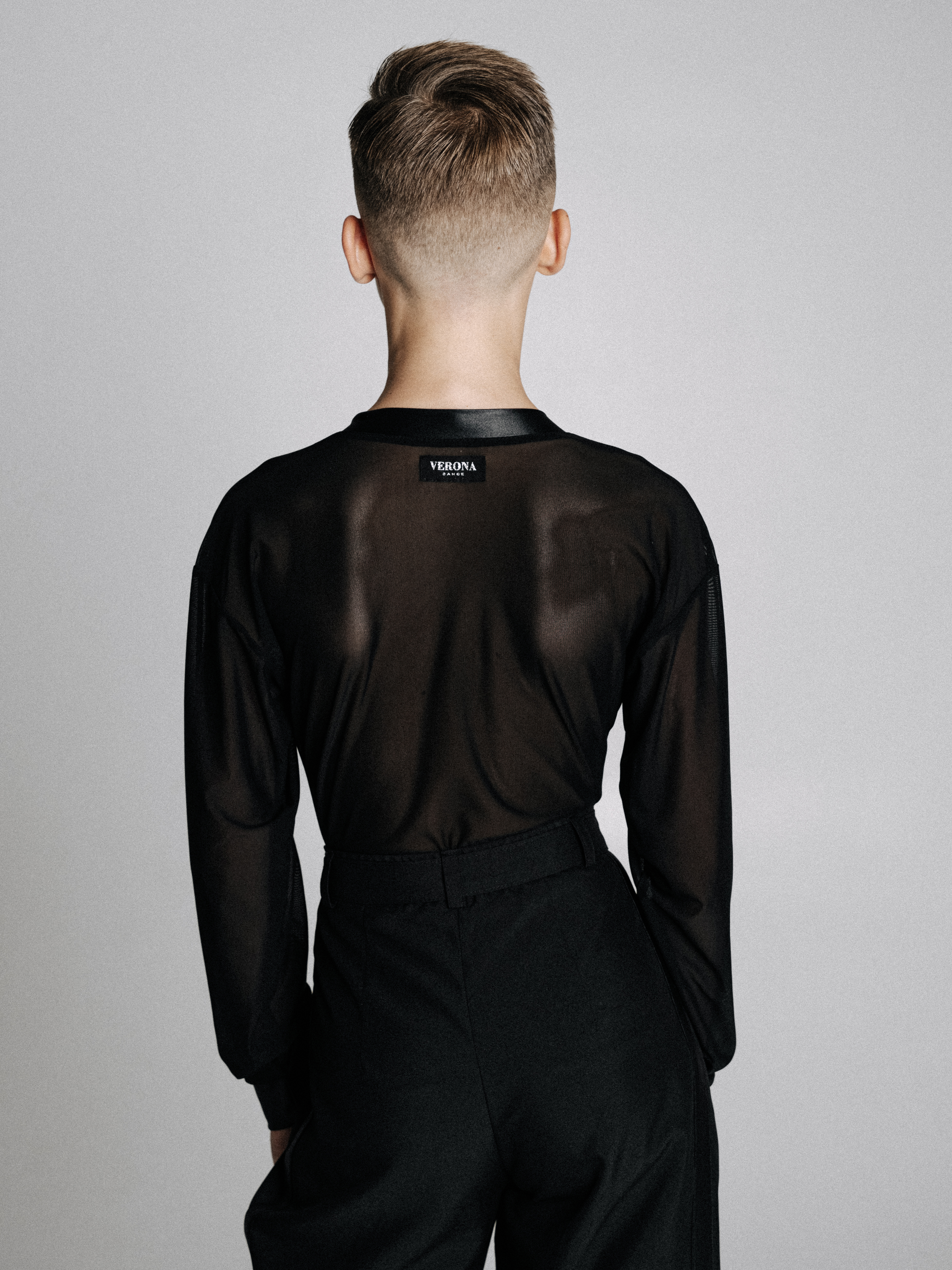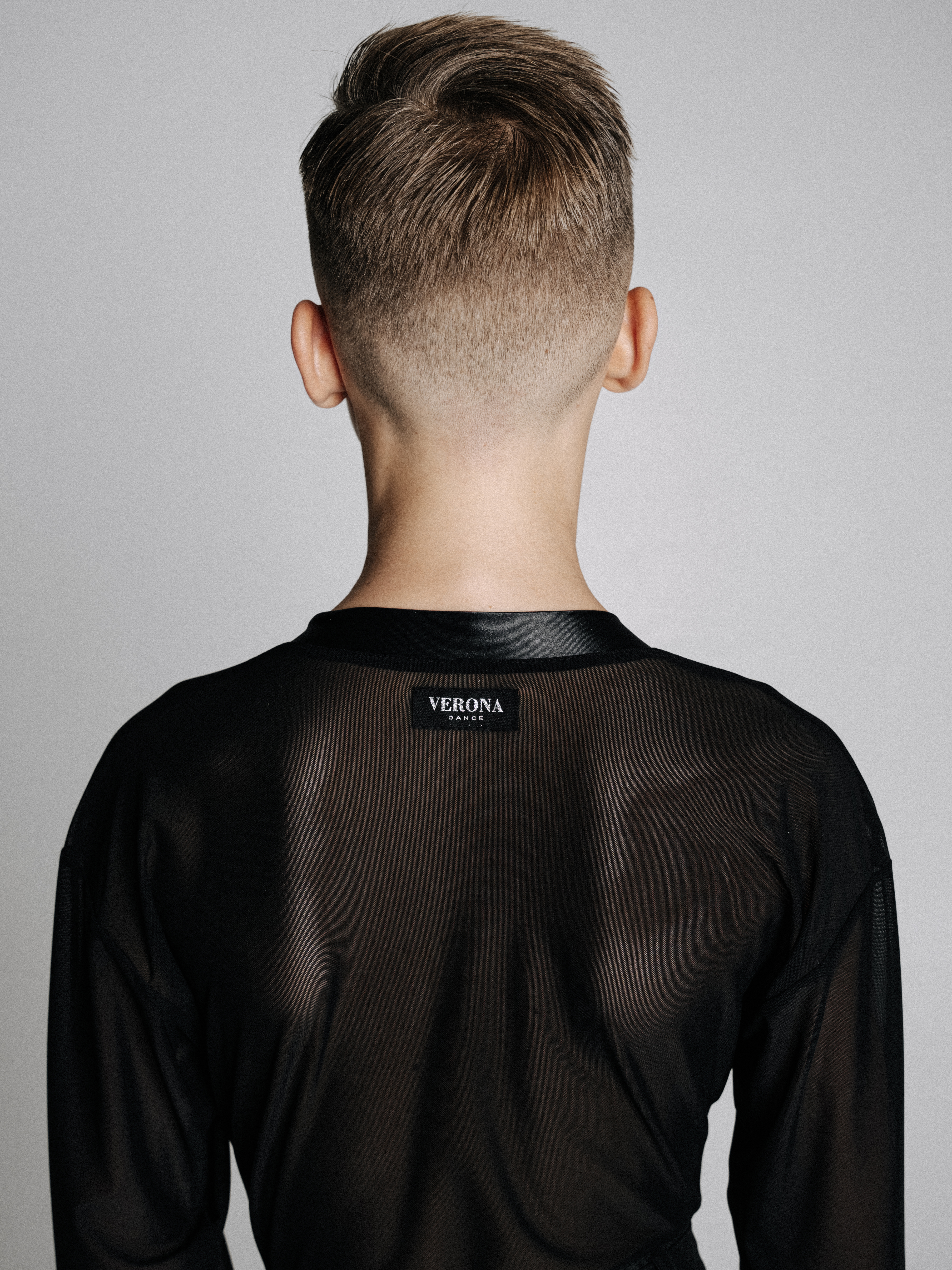 Свободный рукав в форме летучей мыши обеспечивает максимальную свободу движений и комфорт во время танца. Глубокий вырез подчёркивает изящность линии шеи, создавая элегантный образ. Планка из перламутра эффектно дополняет боди. С этим боди ваш юный танцор будет чувствовать себя уверенно и стильно, выделяясь на паркете!