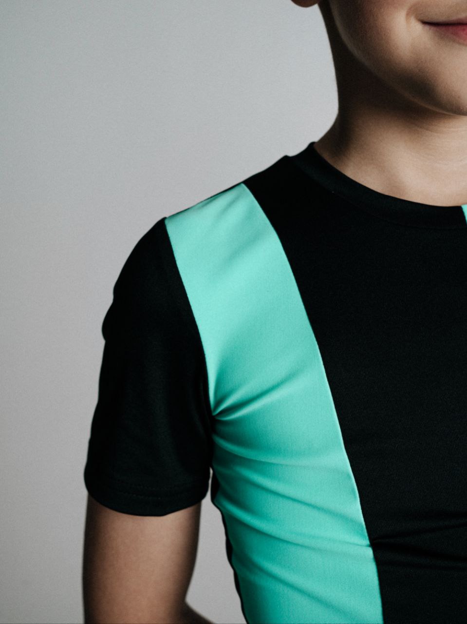 Удобная и стильная футболка, изготовленная из дышащего и эластичного спорттекса. Декоративный рельеф на правой стороне и круглый вырез в районе горловины добавляют изюминку дизайну.