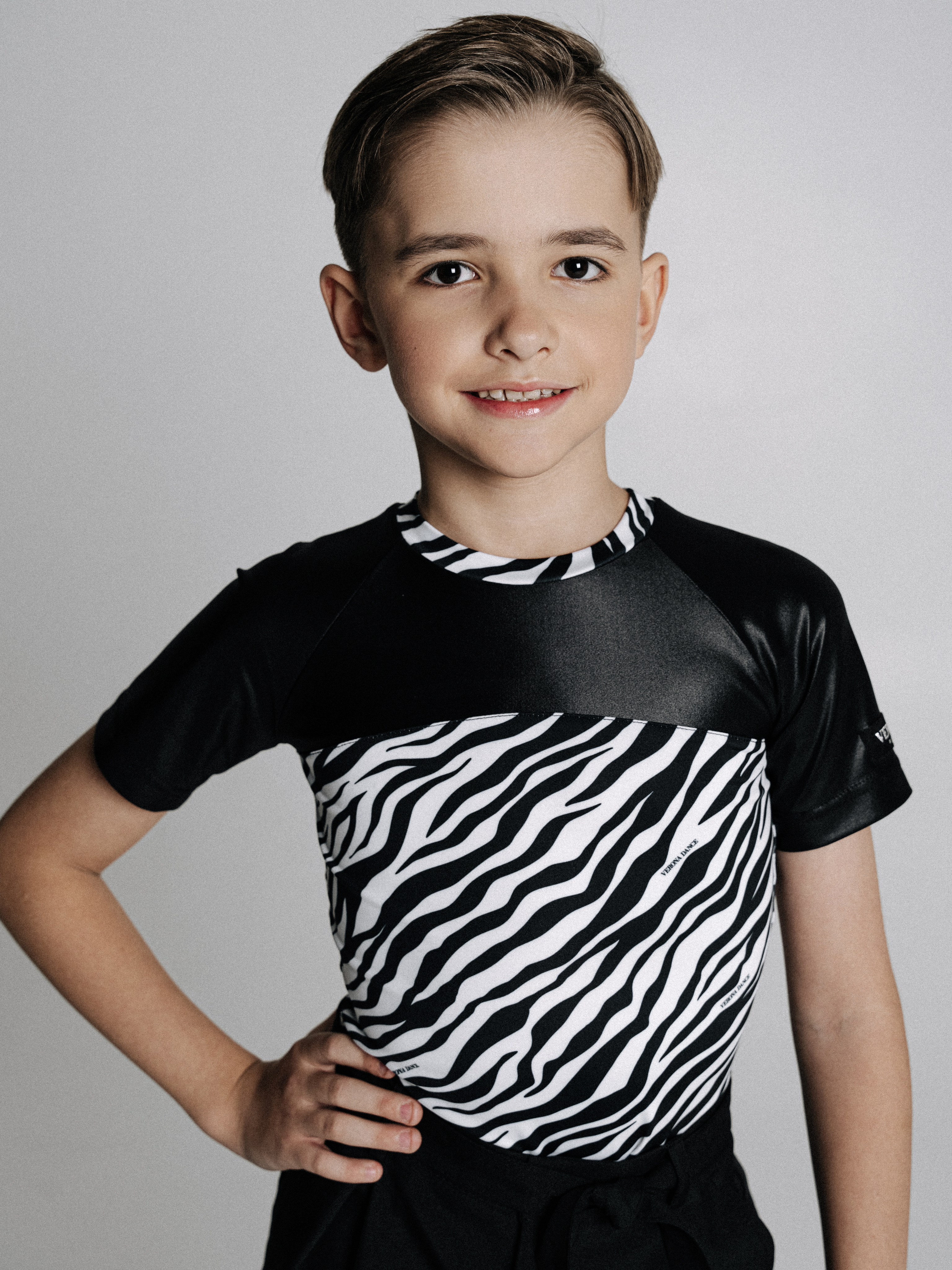 Основной материал - дышащий спорттекс, обеспечивает максимальный комфорт во время тренировок. Кокетка и рукава из перламутрового бифлекса. Отделка по горловине в цвет основной ткани создаёт завершённый и стильный образ.