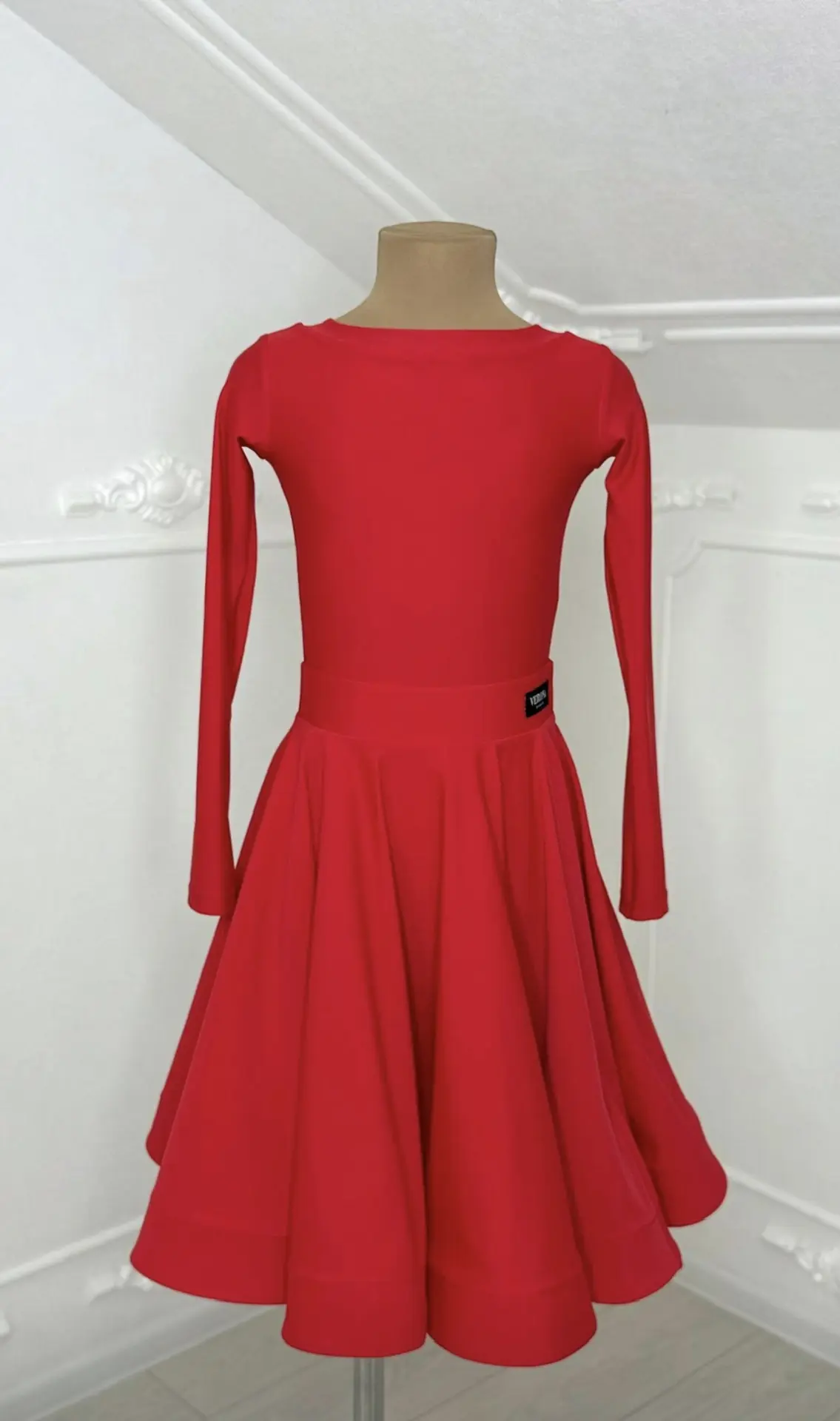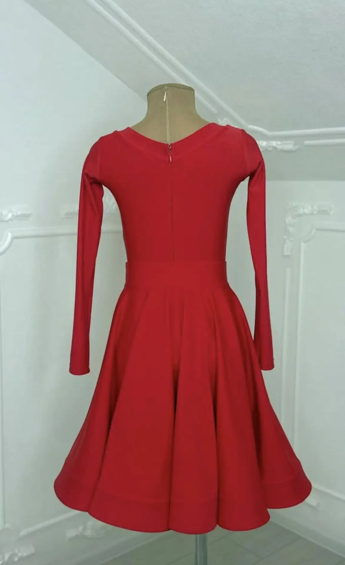 Это платье из матового бифлекса цвета "Фло Ред" — идеальный выбор для партнерш! Вырез "лодочка-угол", удлинённые рукава и элегантная длина юбки 1,5 солнца подчёркивают индивидуальность, добавляя образу уверенности.