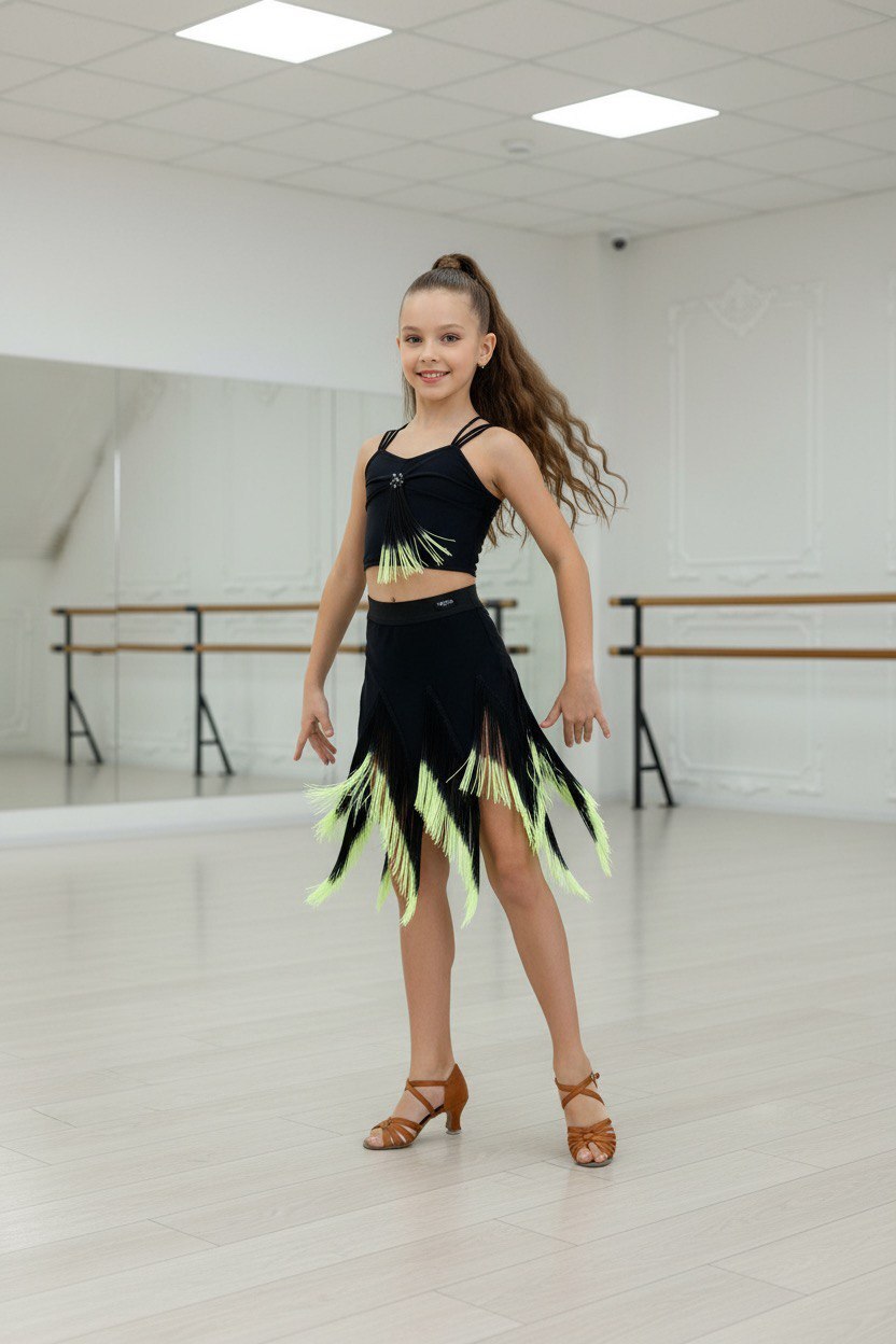 Описание Юбка на трусиках с разрезами, декорированными бахромой, позволит вам двигаться свободно и уверенно!